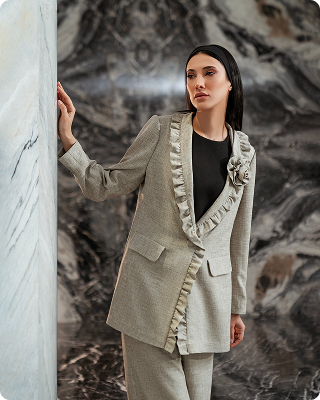 کت و شلوار آمیتیس کد 0123با پارچه لینن کتان، آستین کیمونو، قد ۱۴۰ سانت، رنگهای کرم، سرمهای، سبز زیتونی.